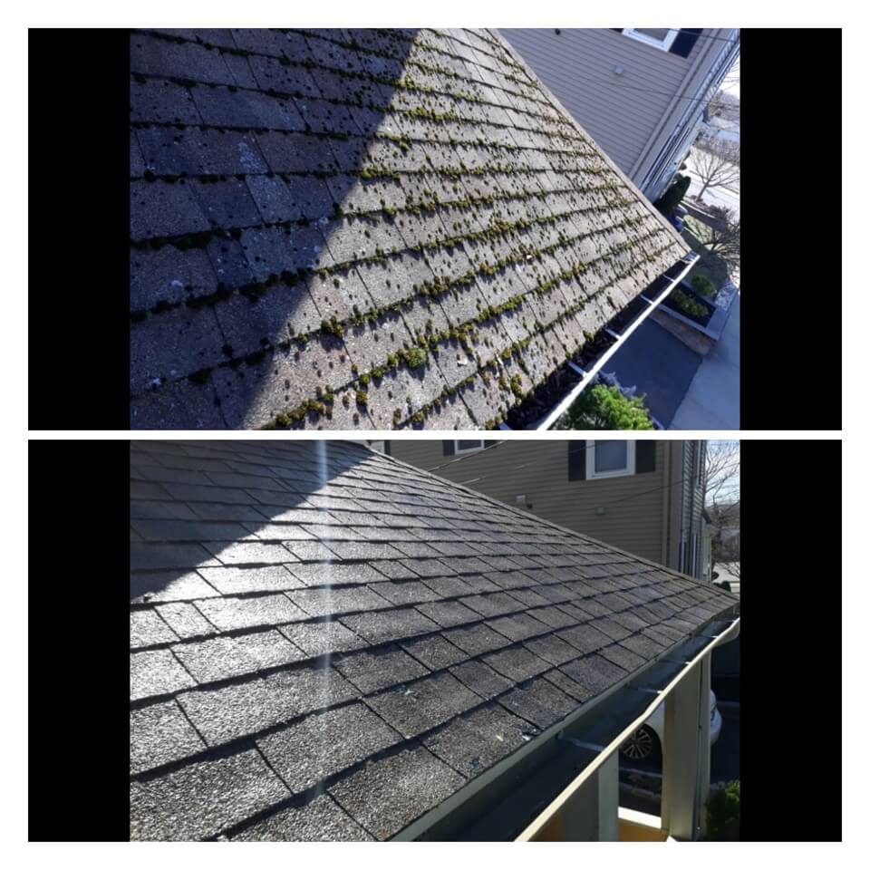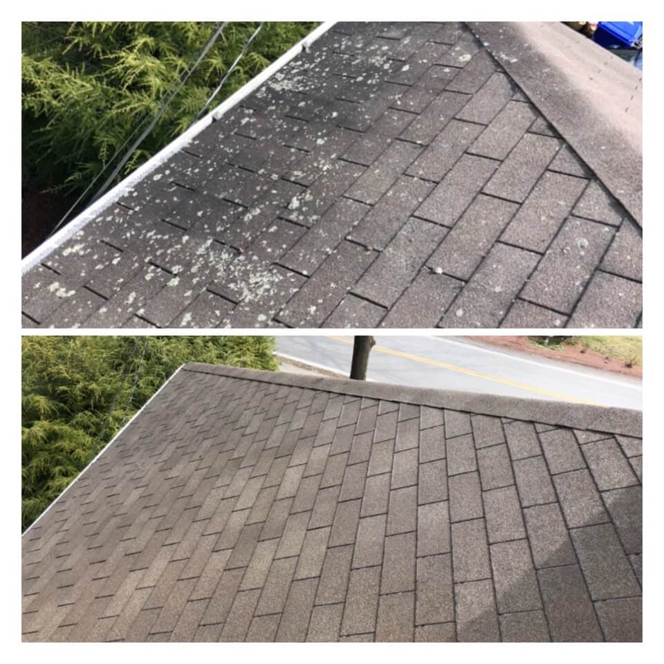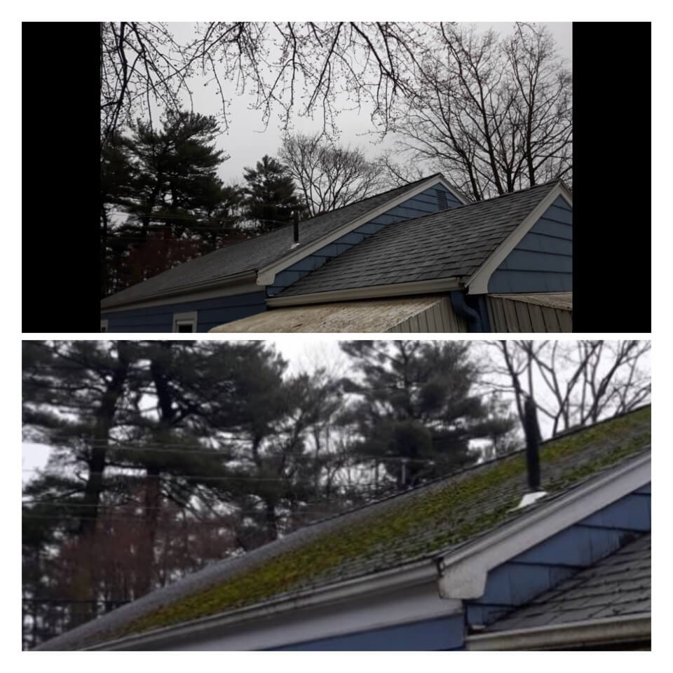 HiCleaners is the most experienced company in Litchfield, NH that deals with roof washing and roof soft washing. All of our employees are trained to recognize precise solution mixing ratios to provide you with the safest and most effective soft washing service. Roofs are a commonly neglected part of a house due to the fact that most people don’t have ladders to access it, so it is very easy to just leave it alone and forget about problems that may start to arise. Just like many home owners, discoloration and small bits of moss on a roof can be overlooked because of the misconception that it is just aesthetic. However, it isn’t just aesthetic, the moss slowly lifts the granules off the shingles which in turn shorten the life of the shingle. The moss also spreads, just like any bacteria if it is left alone for too long, it can quickly become a problem that spirals out of control. Call HiCleaners for a free quote, we only use the most advanced eco-friendly solutions and equipment to make sure the job is done right, for the safety of the employees, your plants, grass, pets, and children.