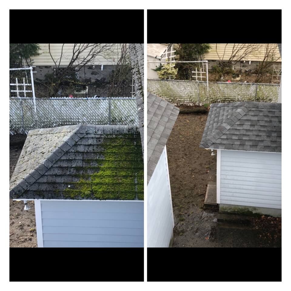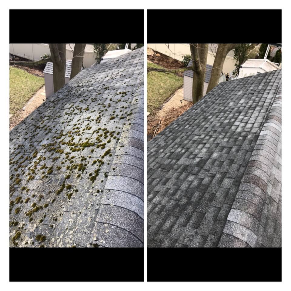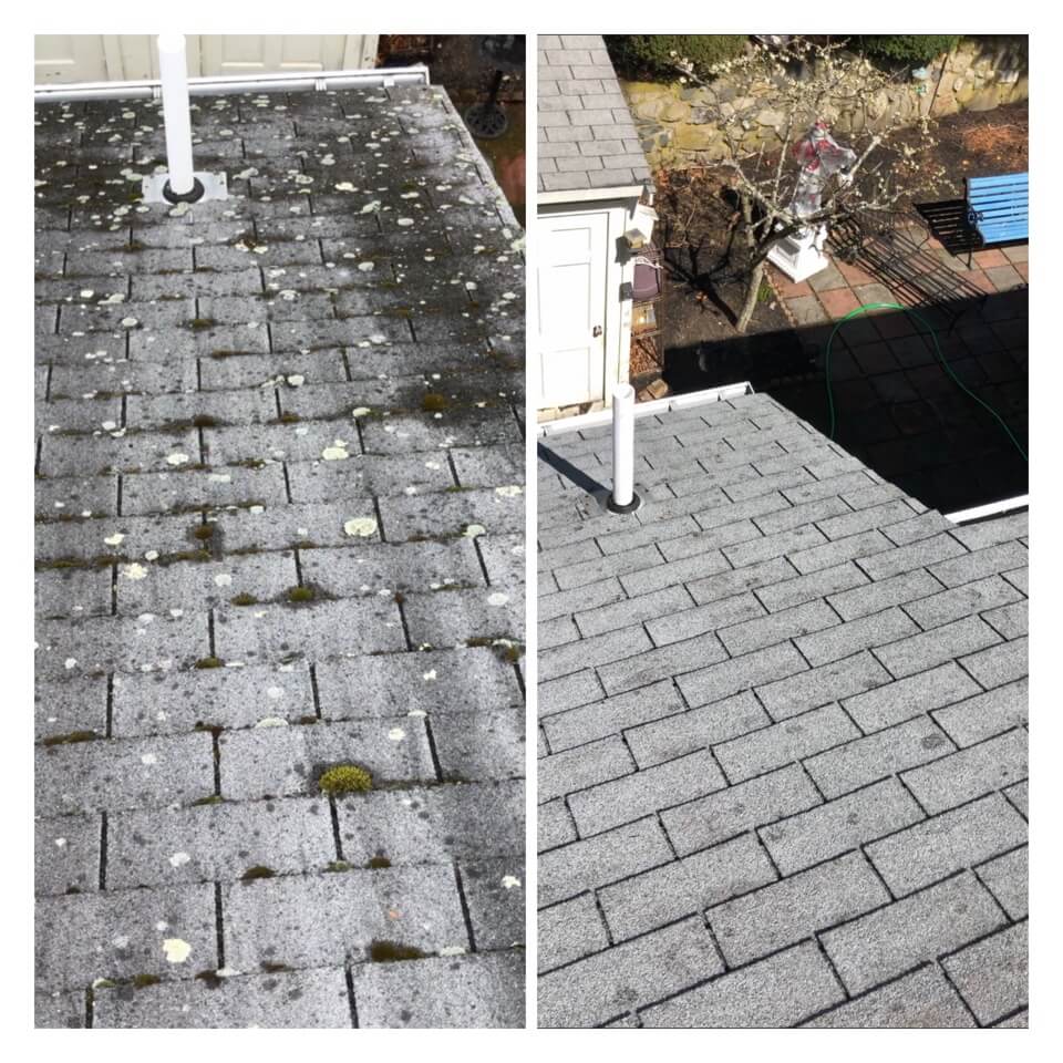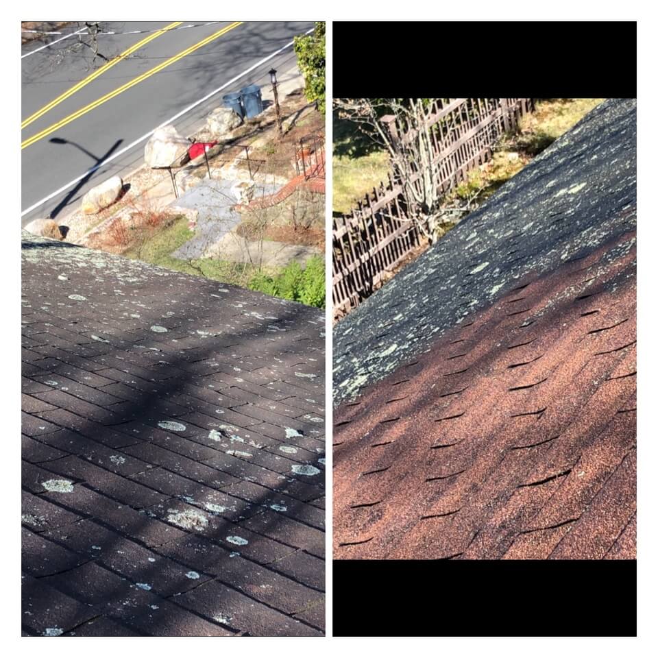 HiCleaners is the most experienced company in Litchfield, NH that deals with roof washing and roof soft washing. All of our employees are trained to recognize precise solution mixing ratios to provide you with the safest and most effective soft washing service. Roofs are a commonly neglected part of a house due to the fact that most people don’t have ladders to access it, so it is very easy to just leave it alone and forget about problems that may start to arise. Just like many home owners, discoloration and small bits of moss on a roof can be overlooked because of the misconception that it is just aesthetic. However, it isn’t just aesthetic, the moss slowly lifts the granules off the shingles which in turn shorten the life of the shingle. The moss also spreads, just like any bacteria if it is left alone for too long, it can quickly become a problem that spirals out of control. Call HiCleaners for a free quote, we only use the most advanced eco-friendly solutions and equipment to make sure the job is done right, for the safety of the employees, your plants, grass, pets, and children.